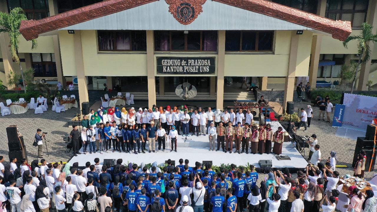 Portalika.com [SOLO] – Universitas Sebelas Maret (UNS) Surakarta bersama 21 Perguruan Tinggi di Soloraya melakukan Deklarasi Pemilihan Umum (Pemilu) Damai. Deklarasi tersebut digelar di Halaman Gedung dr. Prakosa UNS, Jumat, 29 Desember 2023.