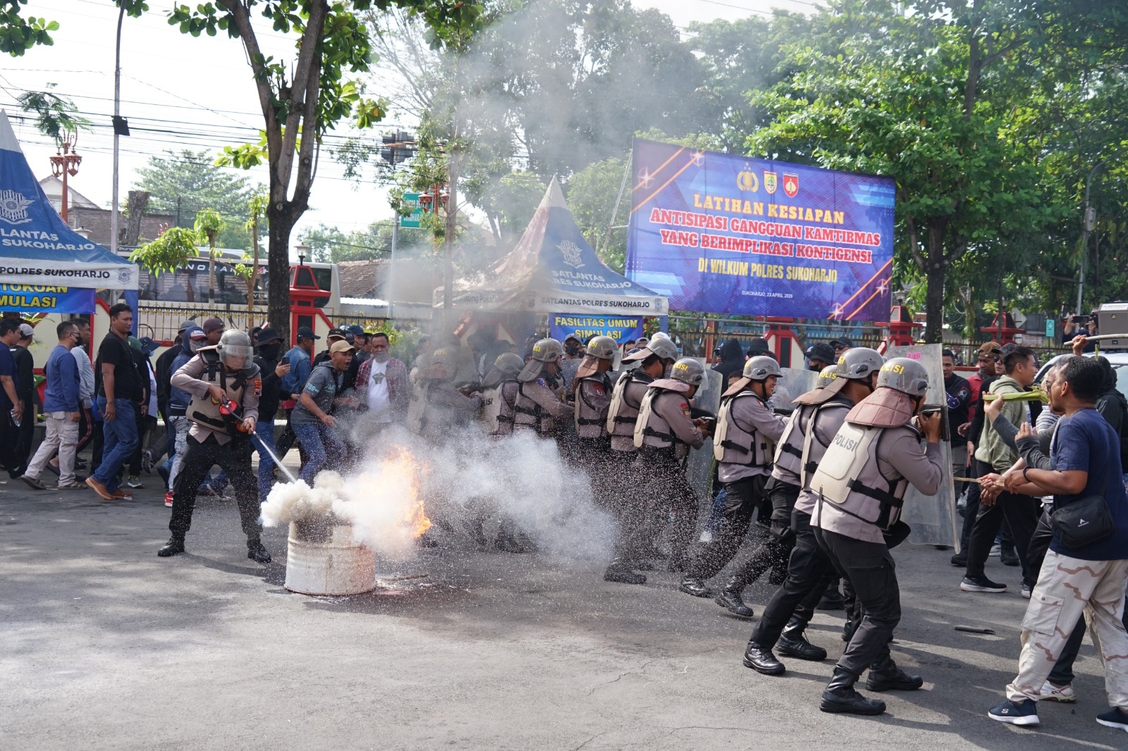 Portalika.com [SUKOHARJO] – Polres Sukoharjo menggelar simulasi penanganan kegiatan masyarakat yang berpotensi menimbulkan situasi kontingensi, termasuk skenario unjuk rasa yang berujung anarkis.