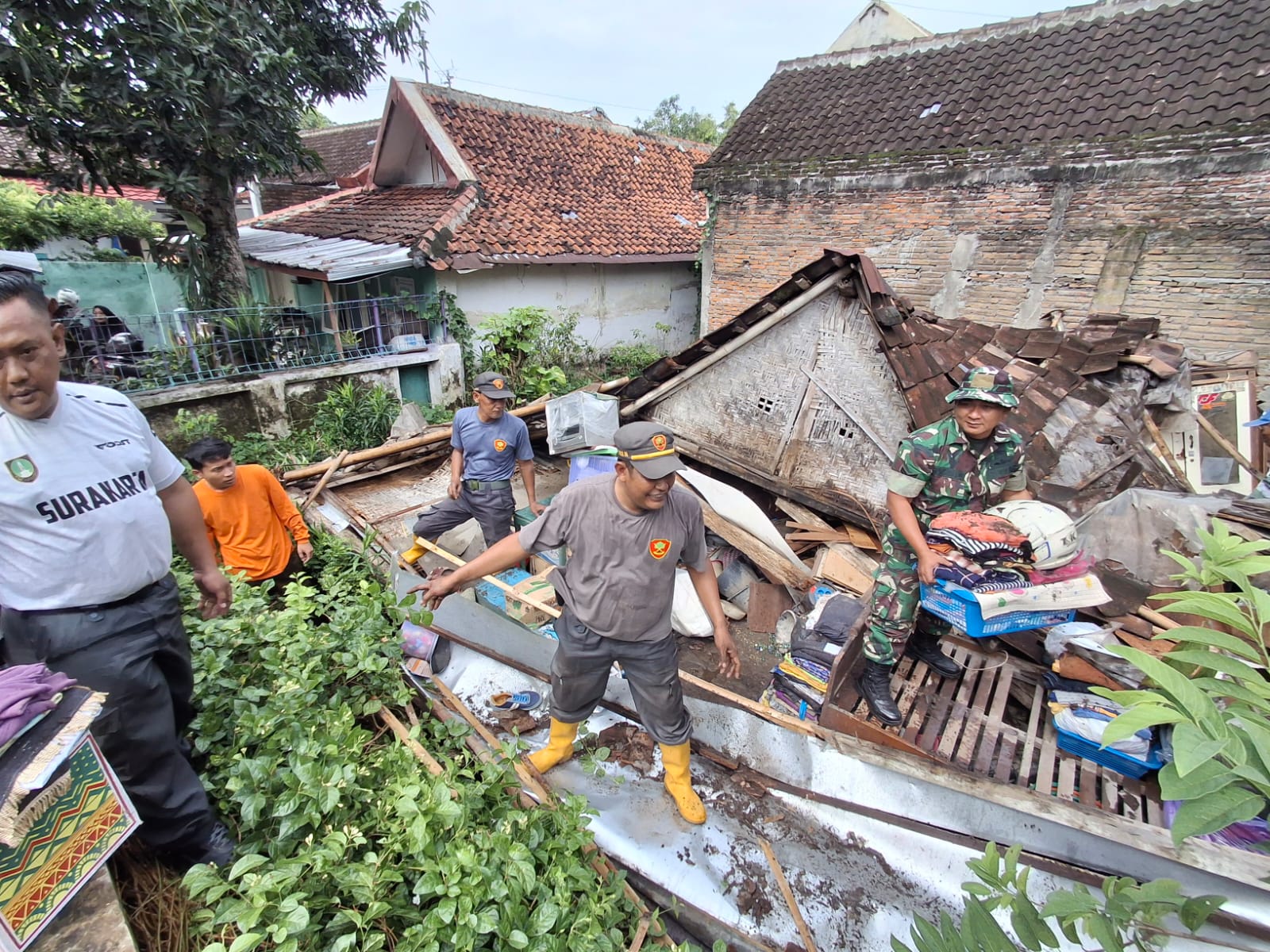 Danramil Serengan Kapten Cba Tri Rusman Prasetyo, SSos menegaskan, dari laporan Babinsa Danukusuman Serda Tito, angin yang bertiup dengan kencang disertai hujan menyebabkan rumah yang ditempati Lastri, 52 roboh rata dengan tanah.