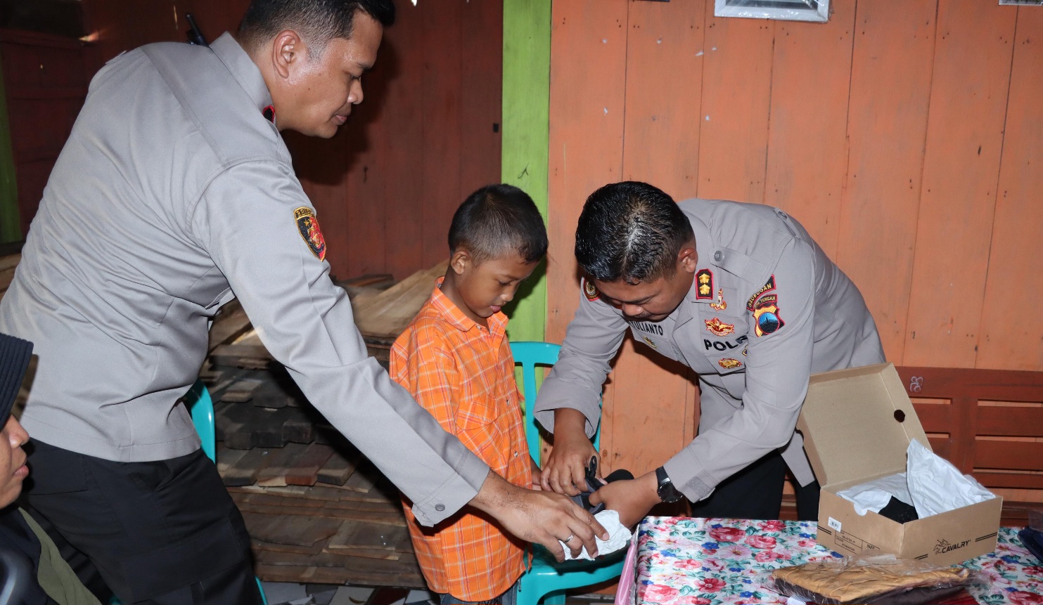 Selain itu, AKBP Ike Yulianto juga memberikan bantuan perlengkapan sekolah untuk Slamet, seperti buku, tas, sepatu, peralatan tulis hingga dukungan dana untuk meringankan beban keluarga tersebut.