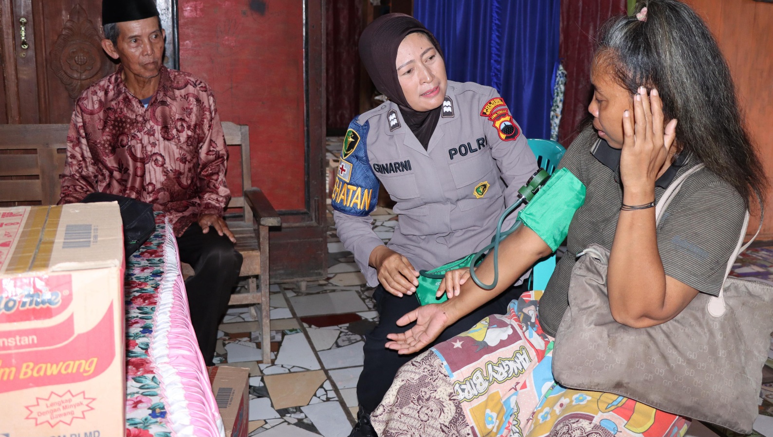 Selain menyalurkan bantuan, Polres Grobogan juga melakukan pemeriksaan kesehatan pada Ibu Slamet dan berkomitmen untuk terus memantau kondisi keluarga tersebut.