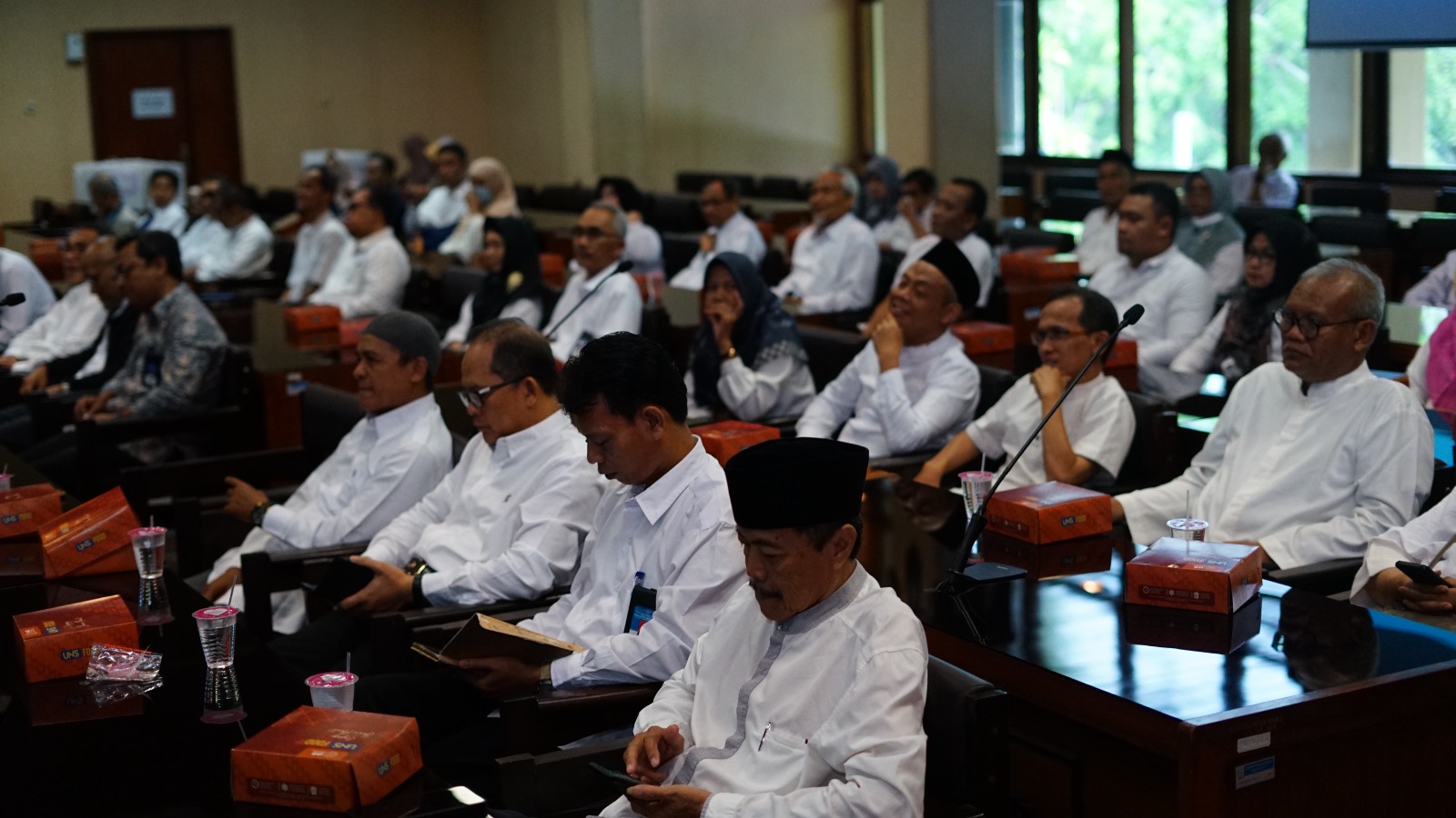 Kemudian para calon jamaah haji dari UNS mengikuti tausyiah Dosen Fakultas Pertanian (FP) UNS sekaligus Ketua Unit Pengumpul Zakat (UPZ) UNS, Dr Ir Joko Sutrisno, MP. (Triantotus)