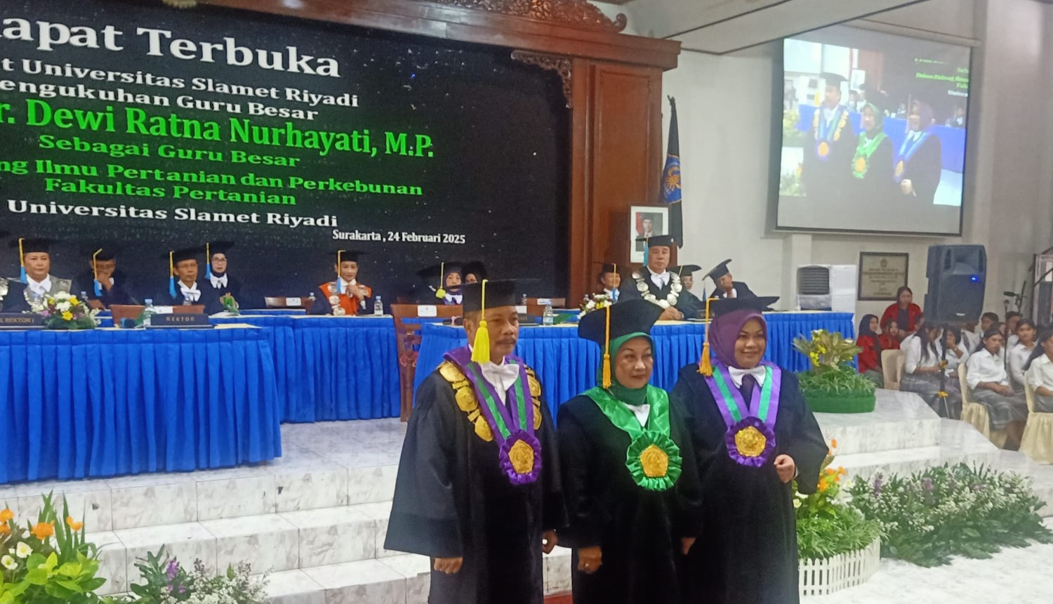Portalika.com [SOLO] – Hari Senin 24 Februari 2025 menjadi hari bersejarah bagi salah satu dosen Universitas Slamet Riyadi (Unisri) Surakarta, Jateng, Dewi Ratna Nurhayati. Perempuan kelahiran Semarang 20 November 1963 ini dikukuhkan menjadi profesor pertama di Fakultas Pertanian (Faperta) Unisri.