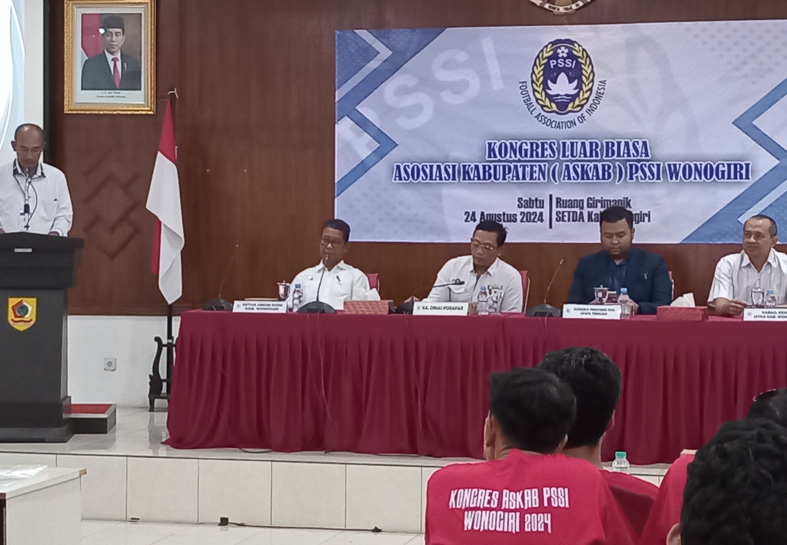 KLB dihadiri pengurus Asprov PSSI Jateng, Dr Arya Surendra yang juga Plt Ketua Askab Wonogiri, Ketua KONI Wonogiri, Drs Sungkono, MM, Kepala Dinas Pariwisata, Pemuda dan Olahraga, Haryanto, SSTP, MM, Kabag Kesra, Rujito, pengurus dan 33 voter. Dwi menggantikan Sri Wiyoso.