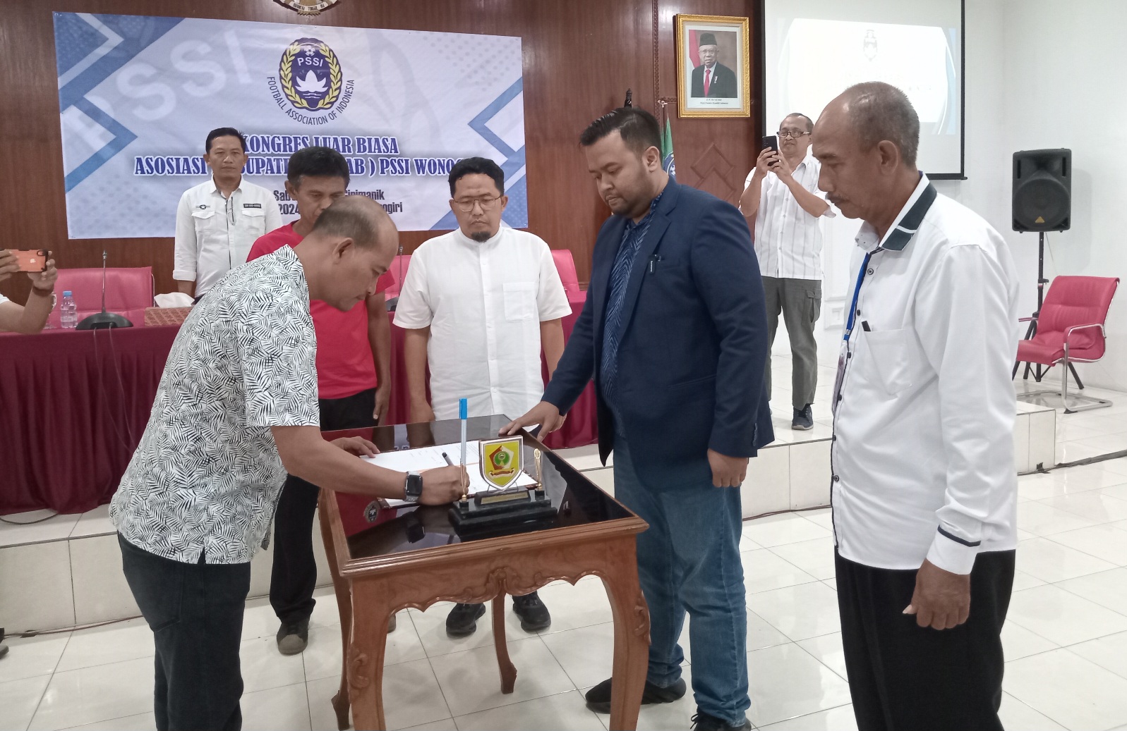 Portalika.com [WONOGIRI] – Peserta Kongres Luar Biasa (KLB) Asosiasi Kabupaten (Askab) PSSI Wonogiri secara aklamasi memilih calon tunggal Dwi Haryanto, SE, MM. Aparatur Sipil Negara (ASN) yang kini menjabat sebagai Kepala pengadaan barang dan jasa ditetapkan sebagai Ketua Askab PSSI Wonogiri periode 2024-2028.