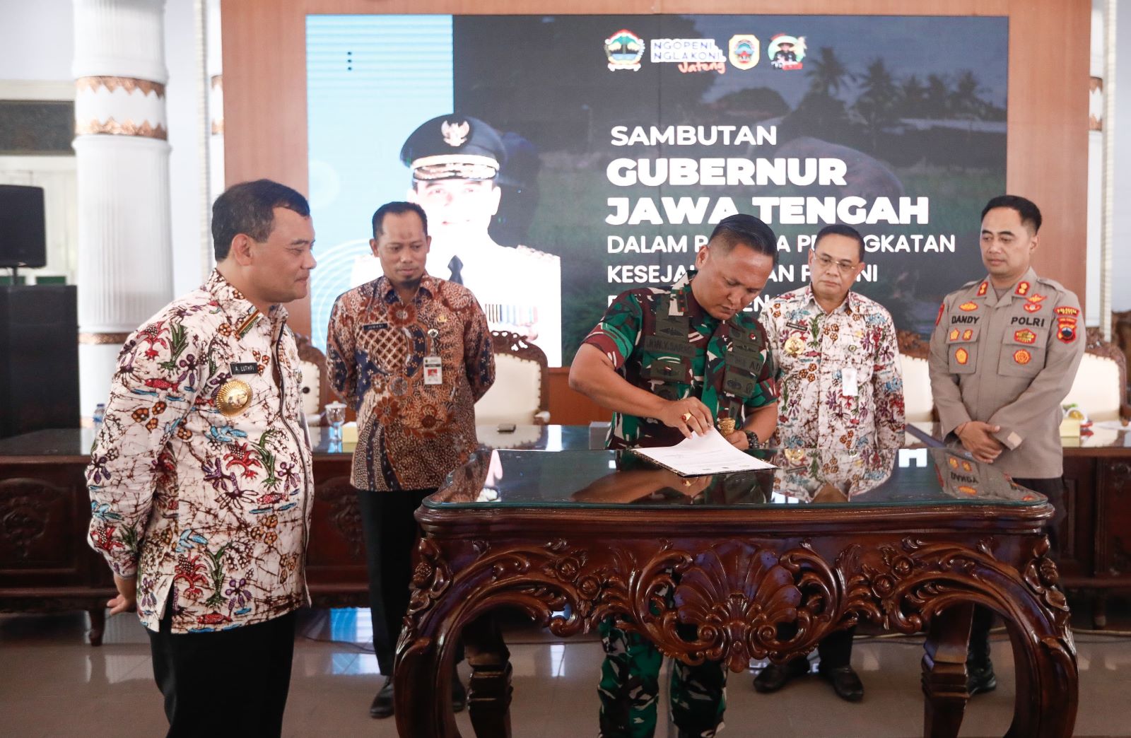 “Dukungan ini sangat perlu karena Pemda dalam hal ini tidak mungkin bisa berjalan sendiri. Perlu adanya dukungan dari seluruh instansi vertikal yaitu TNI-Polri, sehingga hari ini secara de jure dan de facto mereka sudah tanda tangan sehingga secara tidak langsung akan mendukung kegiatan swasembada pangan,” kata Gubernur.