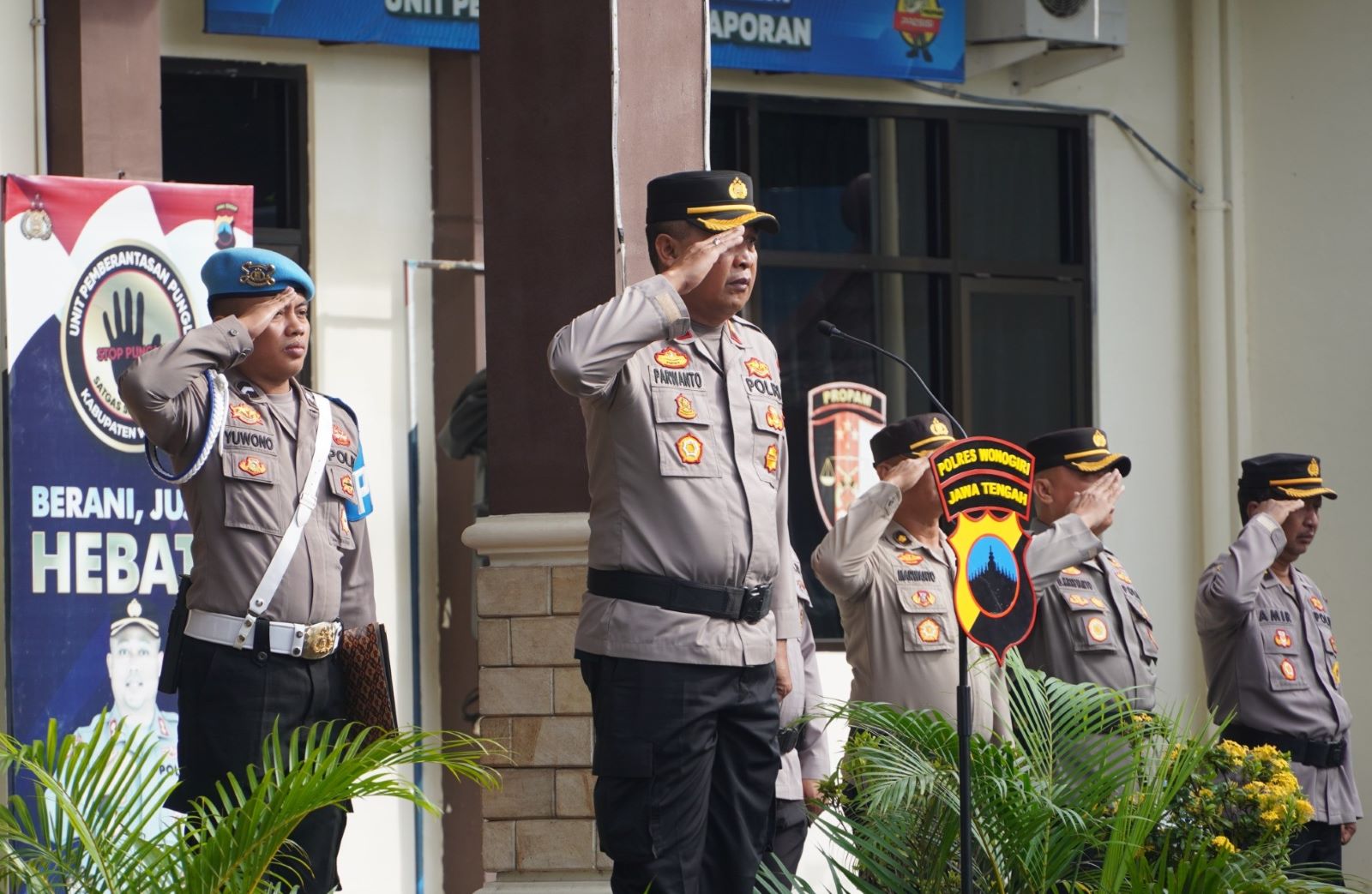 Ditemui secara terpisah, Kapolres Wonogiri AKBP Jarot Sungkowo, melalui Kasi Humas Polres Wonogiri, AKP Anom Prabowo mengatakan meskipun di Kabupaten Wonogiri telah menggelar upacara secara terpusat, namun kami tetap menggelar upacara serupa secara internal.