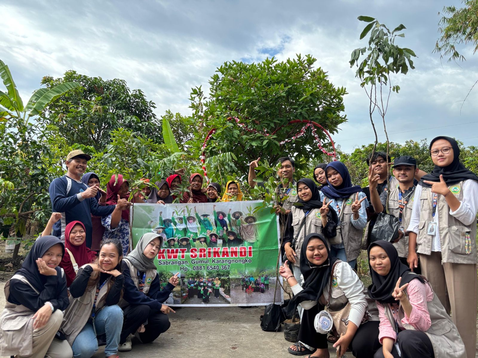 Setelah bibit diterima, mahasiswa melaksanakan agenda penyaluran dengan dua tahap. Pertama, penyerahan 20 bibit tanaman buah kepada Kelompok Wanita Tani (KWT) Srikandi RW 10 Desa Gumul. Penyerahan ini disambut antusias oleh anggota KWT, karena selain bermanfaat untuk penghijauan, bibit tersebut juga diharapkan dapat menambah hasil panen buah di masa mendatang.