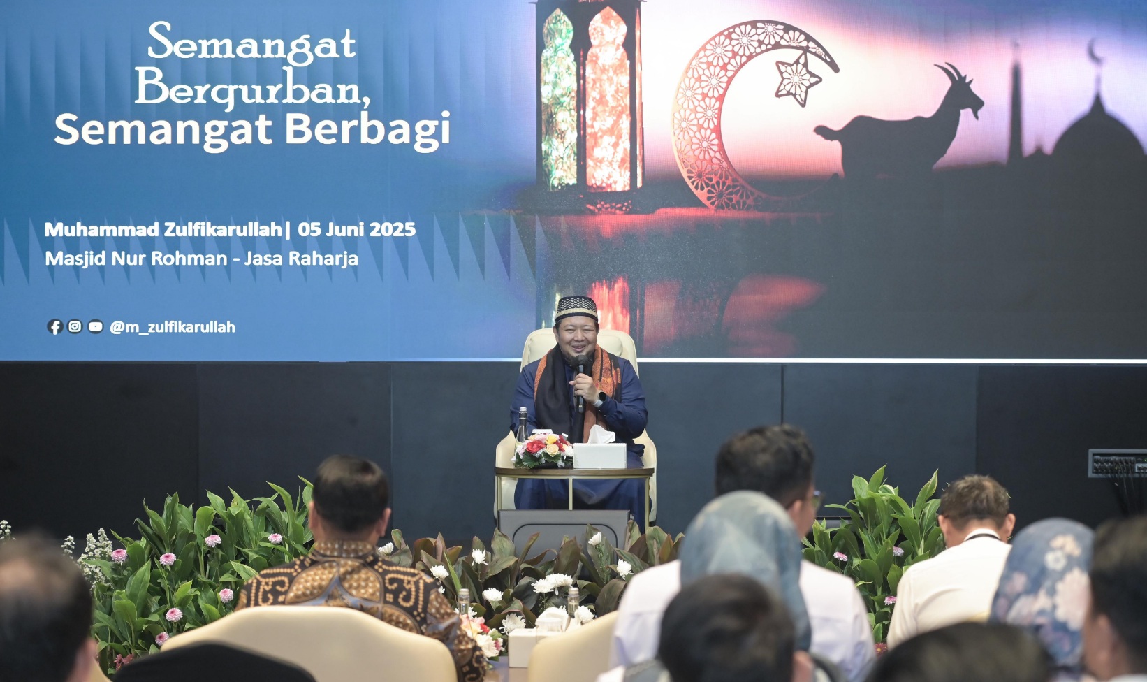 Plt Direktur Utama Jasa Raharja, Rubi Handojo, menegaskan perayaan Idul Adha bukan hanya seremoni keagamaan, tetapi juga momentum memperkuat integritas dan nilai-nilai spiritual dalam pelayanan publik.