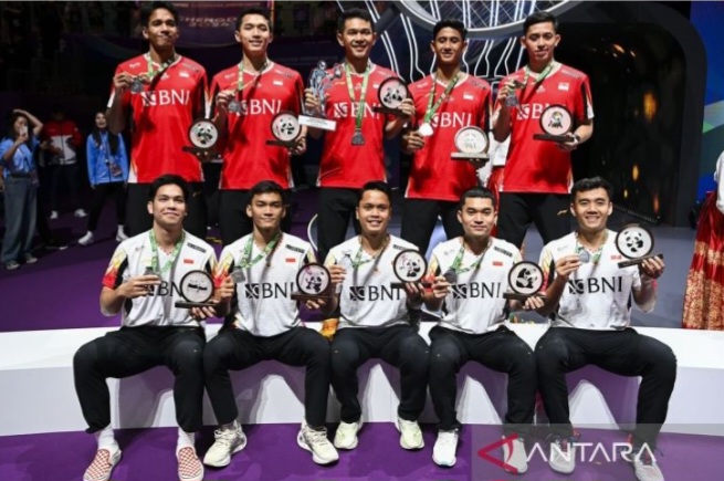 Pebulu tangkis yang 17 Maret lalu mengakhiri dahaga gelar juara tunggal putra All England yang dirasakan Indonesia selama 30 tahun itu, memenangkan enam pertandingannya dalam Piala Thomas 2024.