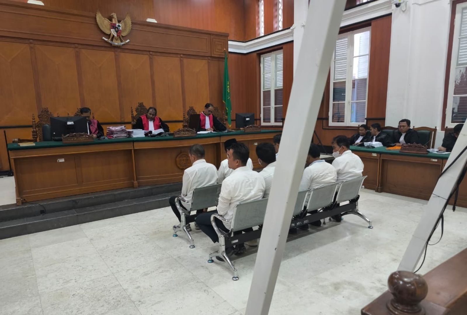 “Dalam tuntutannya, ketujuh terdakwa didakwa melanggar pasal 3 jo. pasal 18 Undang-Undang Nomor 31 Tahun 1999 yang telah diubah dengan Undang-Undang Nomor 20 Tahun 2001 tentang Perubahan atas Undang-Undang Nomor 31 Tahun 1999 tentang Pemberantasan Tindak Pidana Korupsi jo. Pasal 55 ayat (1) ke-1 KUHP sebagaimana dalam dakwaan subsidair,” kata Soetarmi.