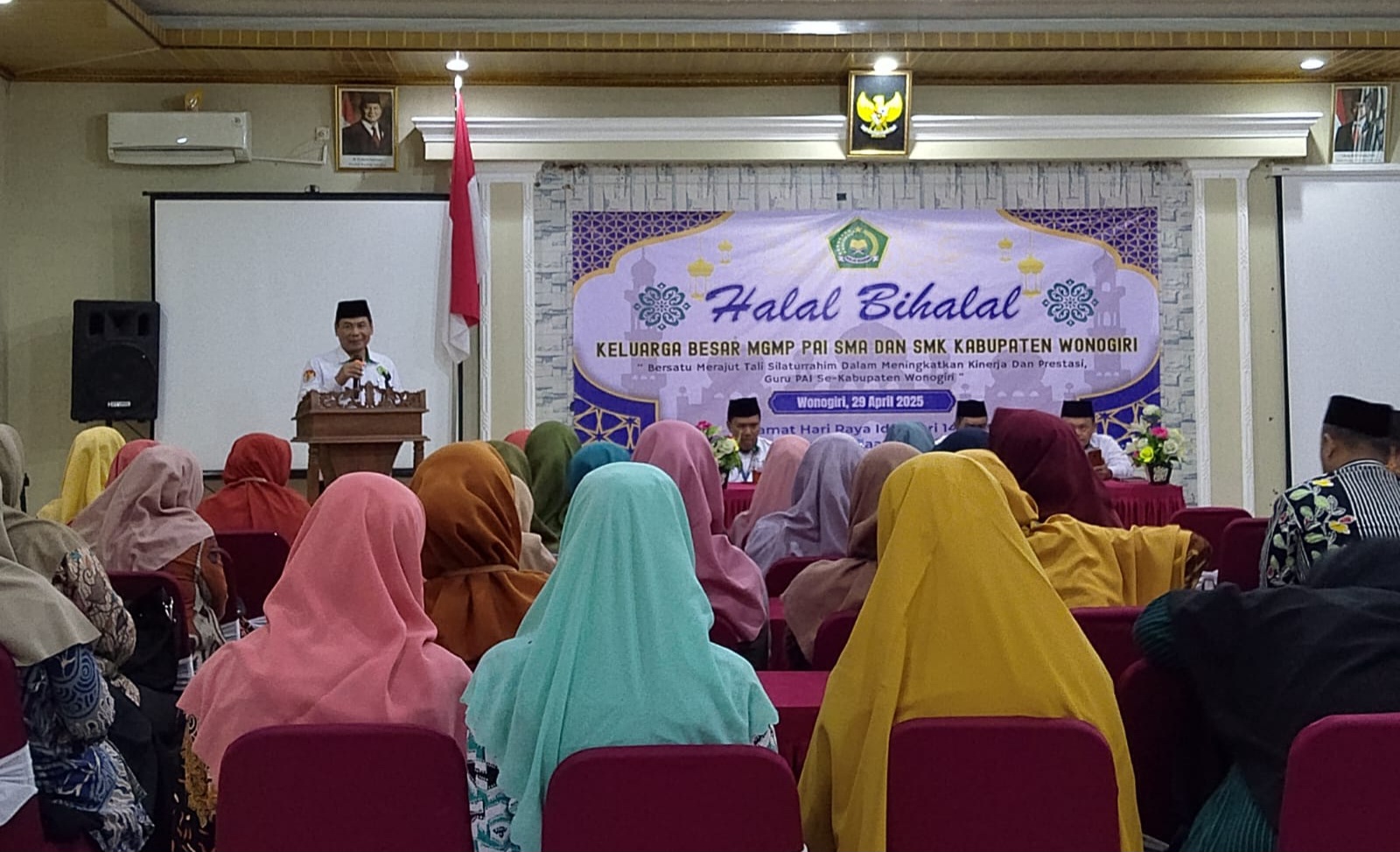 Portalika.com [WONOGIRI] – Guru Pendidikan Agama Islam (PAI) tingkat SMA dan SMK se-Kabupaten Wonogiri mengikuti pembinaan di Aula Rumah Makan Alami Sayang, Desa Ngadirojo Lor, Kecamatan Ngadirojo, Kabupaten Wonogiri, Selasa, 29 April 2025. Kegiatan ini dihadiri lebih dari 90 guru PAI.