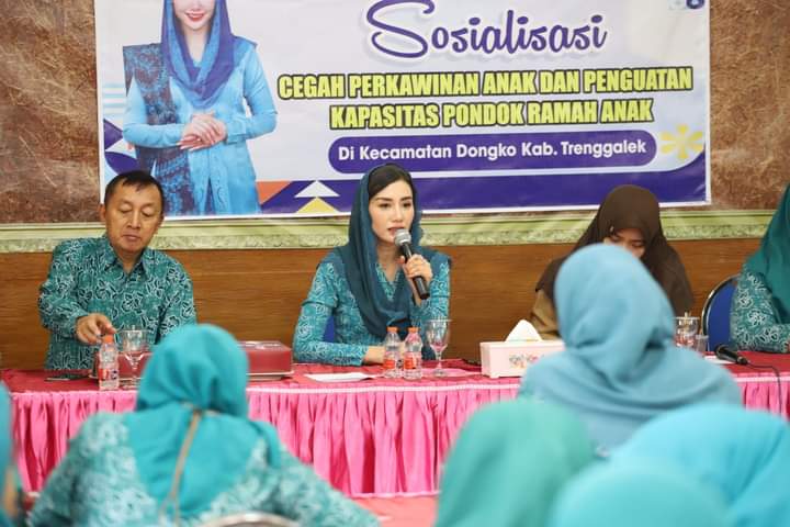 Portalika.com [TRENGGALEK, JATIM] – Ketua PKK Kabupaten Trenggalek, Novita Hardini, SE, ME menyosialisasikan gerakan Cegah Perkawinan Anak (CEPAK) dan peningkatan kapasitas pondok pesantren ramah anak.