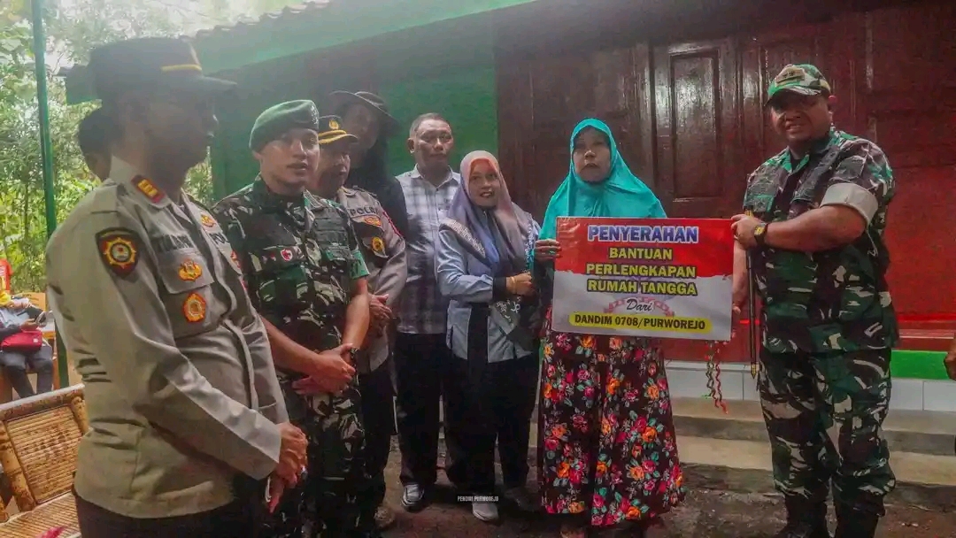 Komandan Kodim 0708 Purworejo Letkol Infanteri Yohanes Heru Wibowo didampingi Kapolres yang diwakili Kompol Karnoto, Danyonif 412/BES Lettu Inf Dede Dwi Saputra, Kepala Rutan Purworejo Eko, Muspika Bayan, Ki Lurah Off Road Muh Harjanto, perwakilan komunitas Patco,TDI Capter, SOG, 4WD, Togetrite, Granat Akrab, Resque, RAPI Purworejo dan perangkat Desa Sucen Juru Tengah meresmikan dan menyerahkan kunci secara simbolis kepada Mujiati pemilik rumah, Rabu,(26/06/2024).