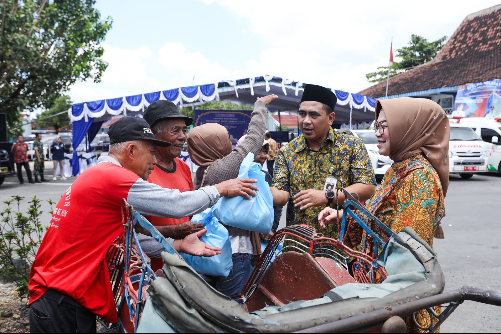 Sementara itu, puluhan warga nampak mengantre untuk mendapatkan pengecekan kesehatan gratis yang diadakan di Terminal Sukoharjo. Di antaranya para crew bus, yang melakukan tes urine dan tes darah.