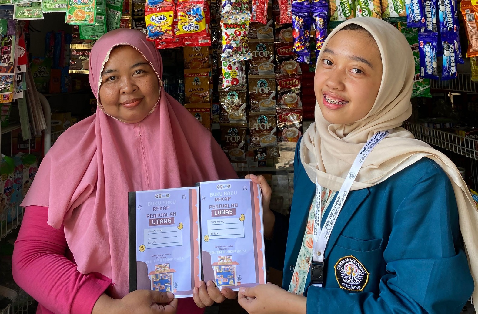 Setelah penyampaian materi, mahasiswa KKN dengan dosen pembimbing KKN, Dr Muchammad, ST, MT dan Lisa’a Yihaa Roodhiyah, SSi, MSi ini, menjelaskan cara pengisian modul rekap penjualan baik lunas maupun utang. Setiap peserta diberikan modul rekap penjualan yang berisi tabel untuk mencatat pendapatan hariannya.