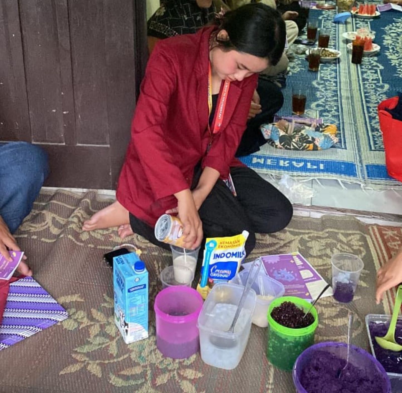 Melalui pelatihan langsung, masyarakat diajarkan teknik pengolahan ubi sago yang praktis dan higienis, sehingga menghasilkan produk minuman yang menarik dan sehat.