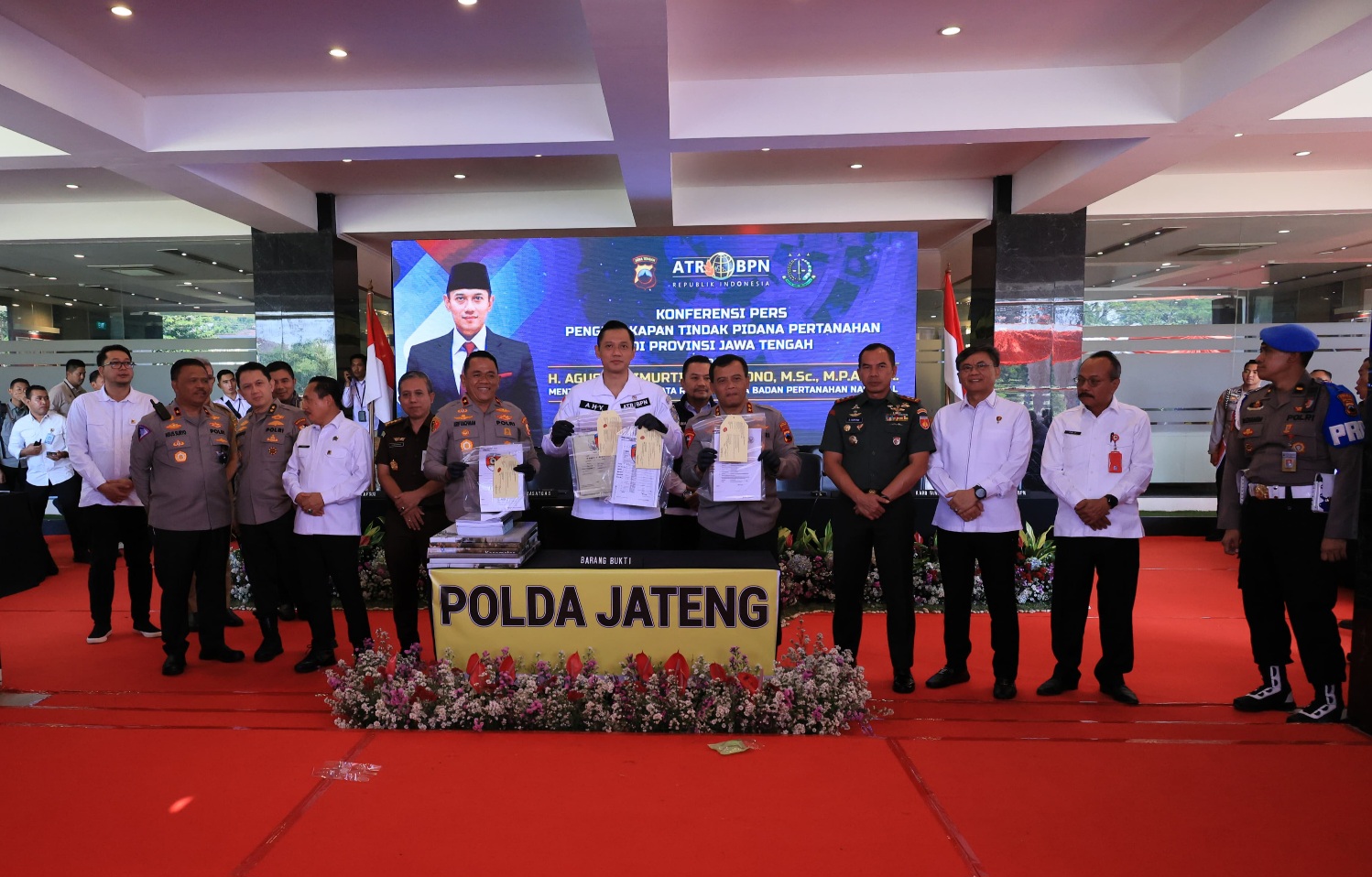 “Ini semua berkat komitmen kami, kerja sama yang kokoh dengan Kantor Wilayah BPN Provinsi Jawa Tengah serta kejaksaan dan anggota sekalian, sehingga ini dapat kita laksanakan. Ini menjadi motivasi bagi kami Polda Jawa Tengah bahwa dalam rangka ikut serta menegakkan hukum serta membangun perekonomian Indonesia,” tutur Kapolda Jawa Tengah.