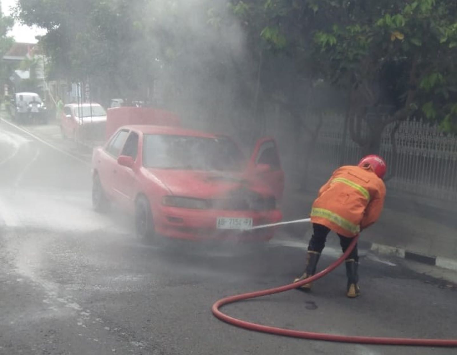 Mobil Sedan Timor Terbakar di Depan Kantor Kejaksaan Wonogiri