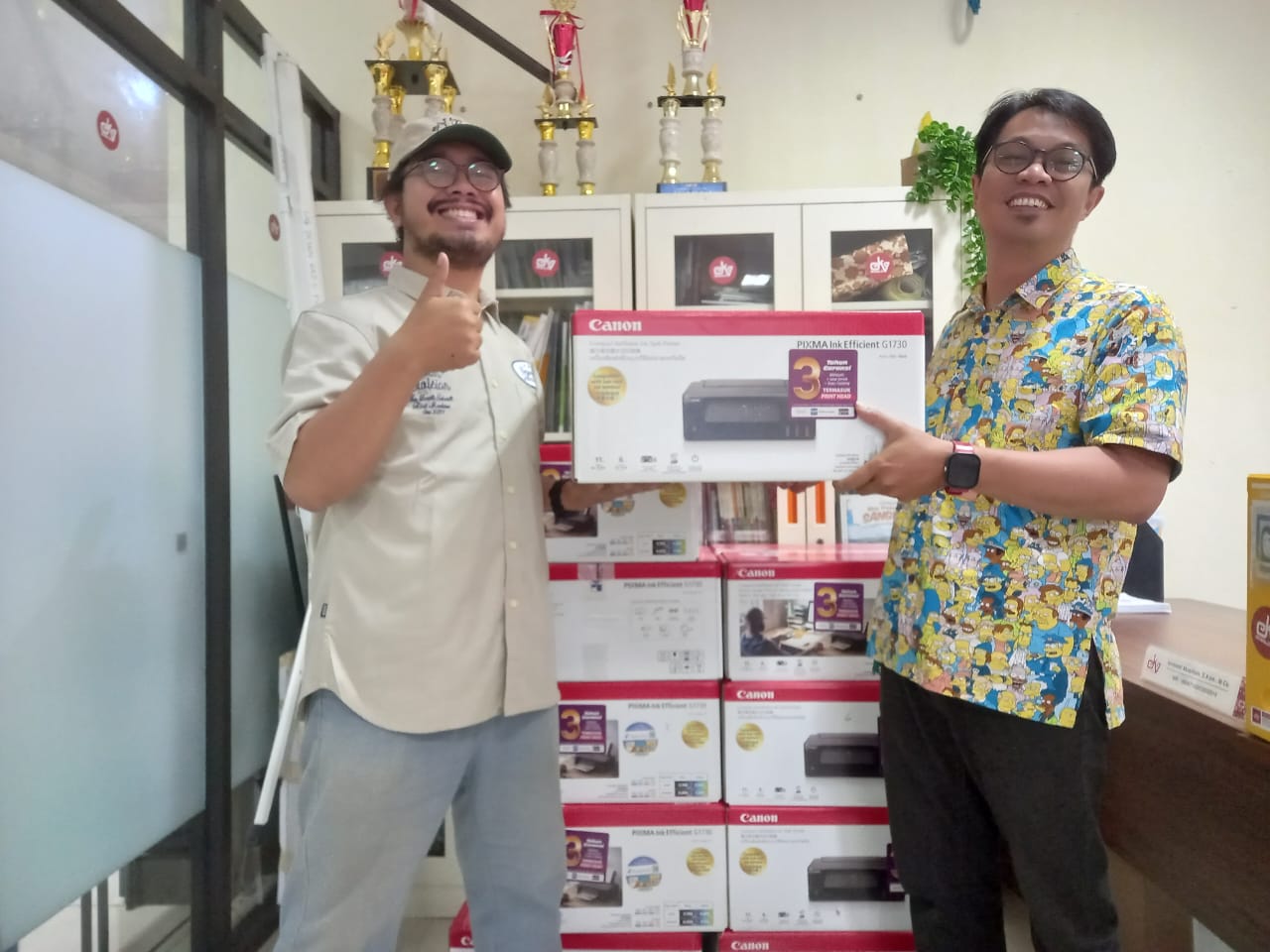 Prodi DKV FSRD ISI Surakarta berhak mendapat 10 unit printer Canon MegaTank G1730. Hibah printer diterima langsung Kaprodi DKV, Rendya Adi Kurniawan pada Selasa, 8 Oktober 2025 di Ruang Dosen Prodi DKV, Gedung V Jurusan Desain, Kampus Mojosongo, Surakarta.