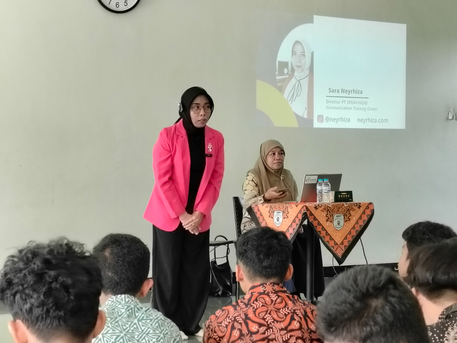 Sara Neyrhiza mengawali pelatihan dengan mengajak ratusan siswa untuk memahami pentingnya publik speaking. Ia menyampaikan tips berkomunikasi di hadapan publik harus siap mental dan punya teknik. Para siswa pun diajak berlatih teknik visual, vokal, dan verbal.