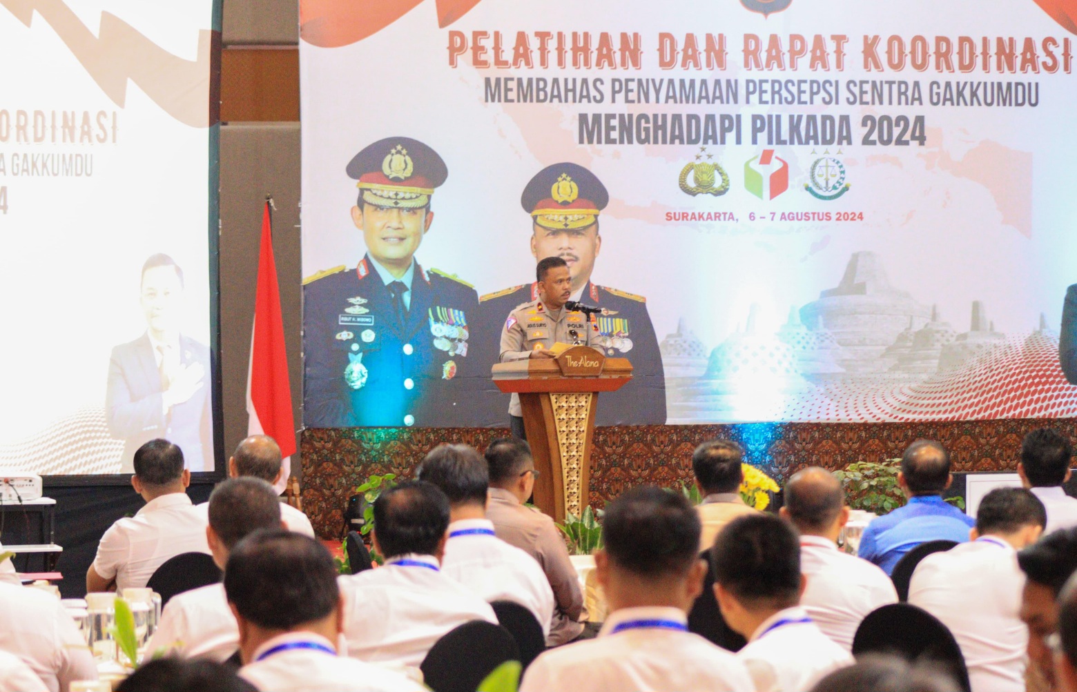 Portalika.com [KARANGANYAR] – Sebagai bentuk komitmen mewujudkan pemilu aman dan lancar Polda Jateng menggelar Pelatihan dan Rakor Sentra Penegakan Hukum Terpadu (Gakkumdu) Pilkada 2024 di The Alana Hotel Convention Center, Kabupaten Karanganyar, Selasa, 6 Agustus 2024.