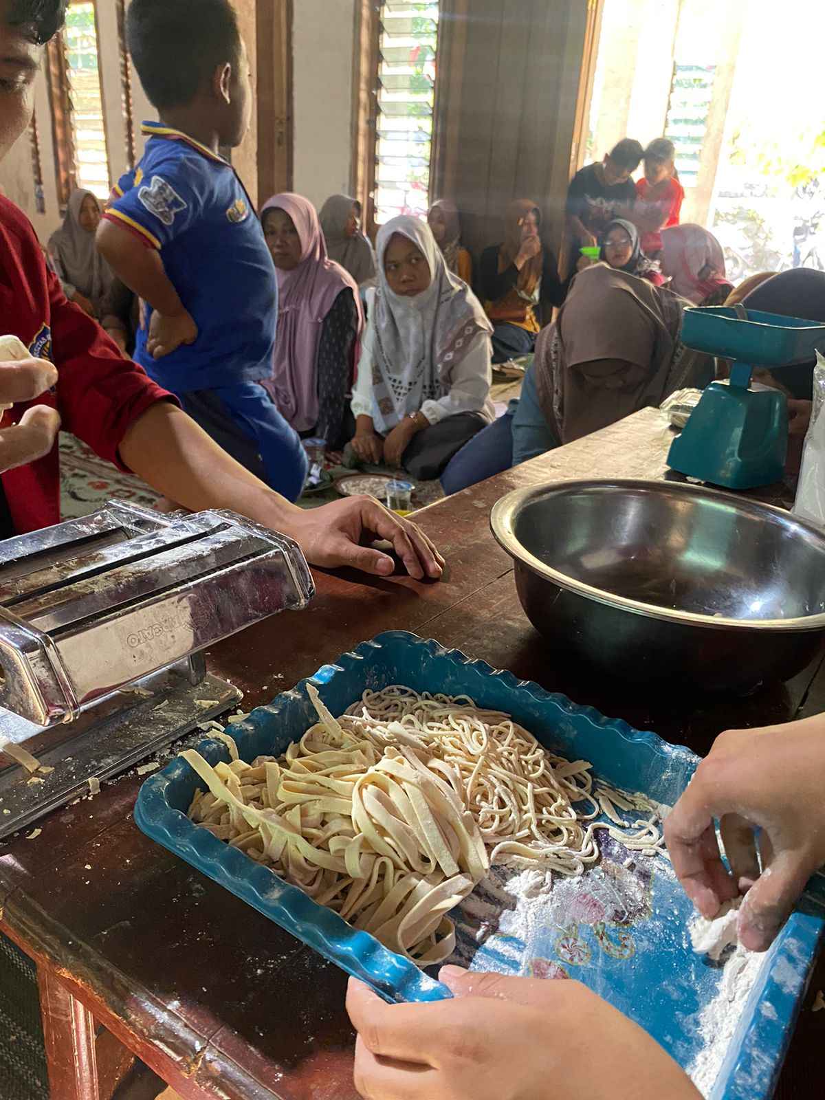 “Pengabdian ini mempunyai tujuan untuk memberikan pengetahuan dan pengajaran mengenai pembuatan tepung mocaf dan penggunaannya sebagai bahan dasar pengganti tepung terigu dalam pembuatan mie sehingga dapat membantu ibu-ibu di Desa Polokarto dalam memenuhi kebutuhan mereka membuat mie dari tepung mocaf dengan harapan hasil produk dapat dijual sehingga dapat menambah income bagi keluarga mereka,” katanya.