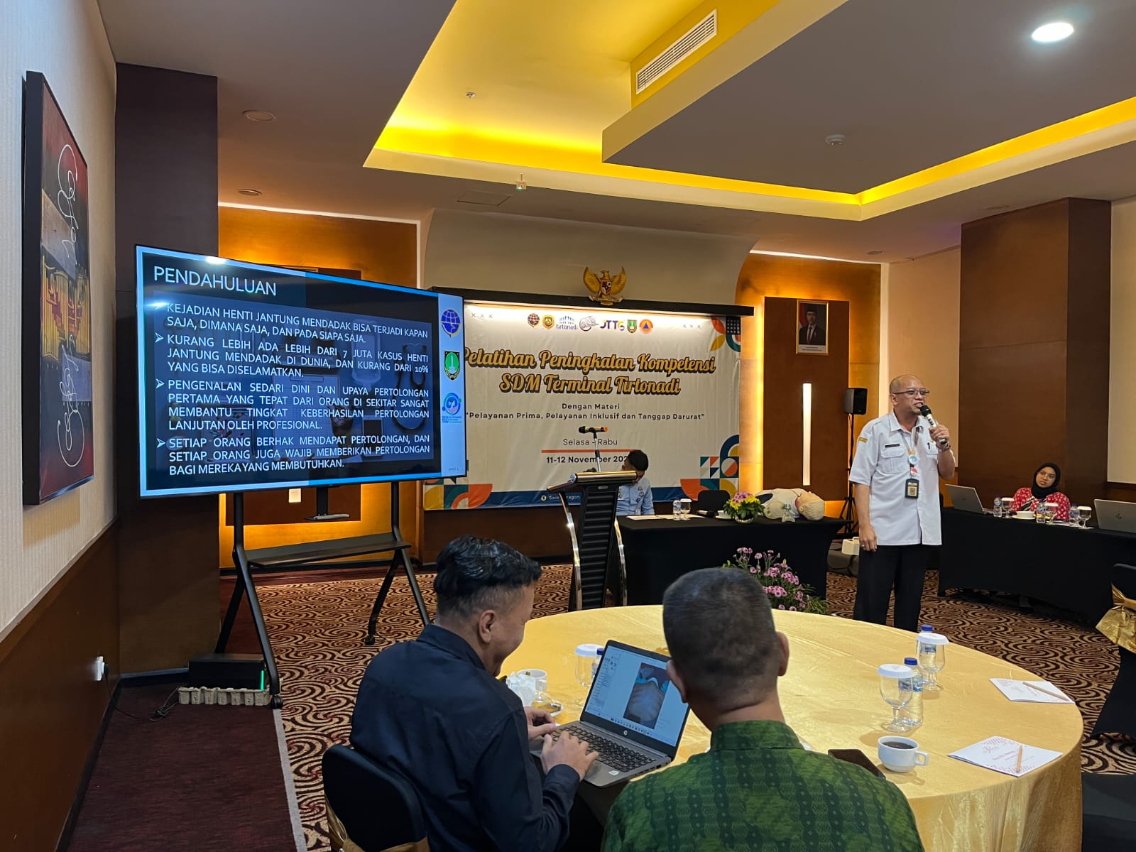 Rabu 12 November 2025, Kantor Terminal Tipe A Tirtonadi menyelenggarakan pelatihan peningkatan kompetensi SDM dengan materi “Persiapan dan Penanganan terhadap Pengguna Jasa yang Mengalami Gangguan Kesehatan”.