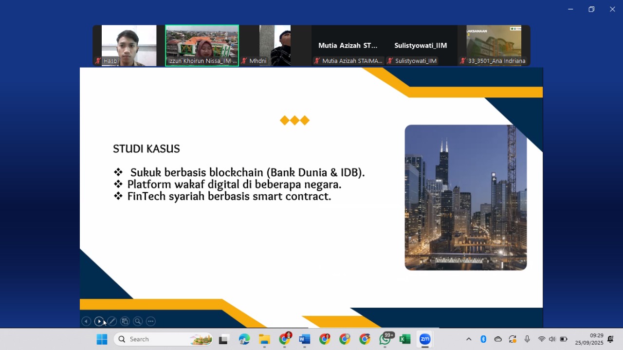 Mereka sepakat bahwa karakteristik utama Blockchain seperti desentralisasi, transparansi, dan immutable ledger sangat relevan dan selaras dengan fondasi prinsip-prinsip syariah. Webinar itu menyoroti bagaimana teknologi Blockchain menawarkan peluang besar untuk mengatasi tantangan transparansi, efisiensi, dan inklusi dalam keuangan syariah.