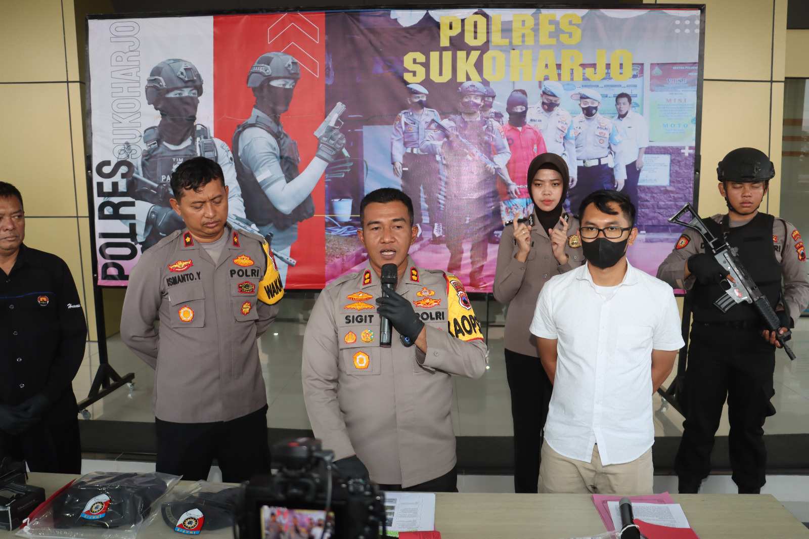 Pria tersebut kemudian dibawa ke Polres Sukoharjo guna pemeriksaan lebih lanjut. Kapolres Sukoharjo AKBP Sigit, saat konferensi pers mengatakan, penangkapan pelaku dilakukan dengan melibatkan Polres Jajaran.