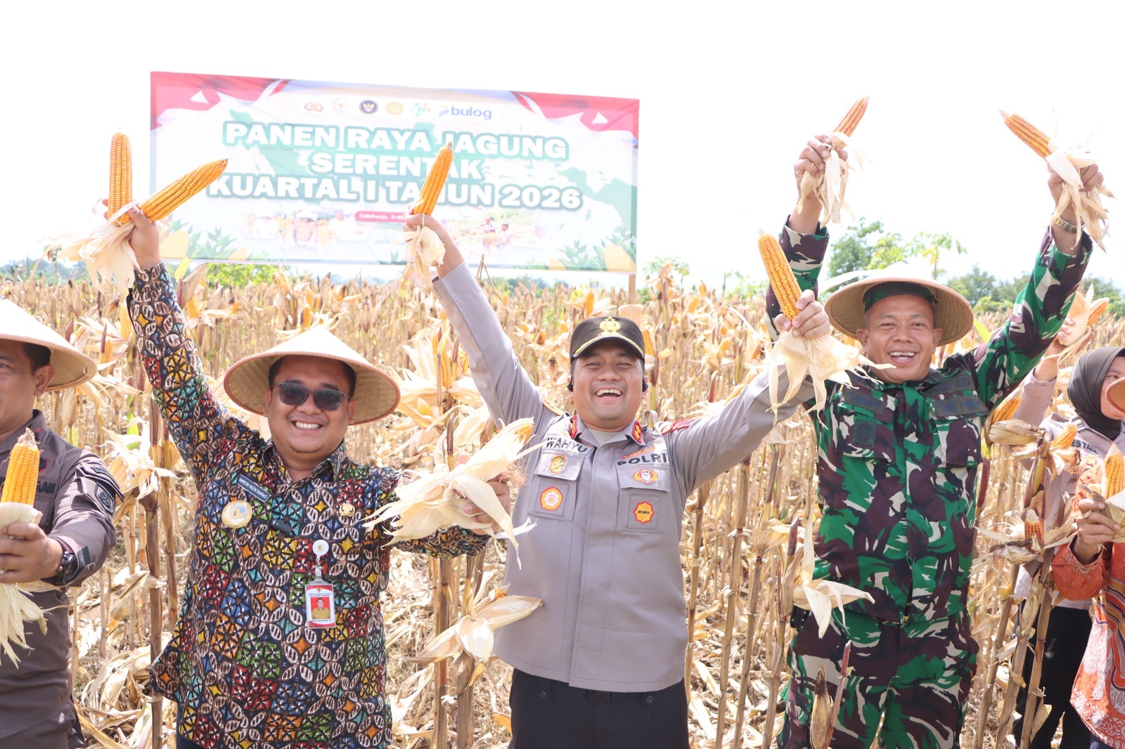 Portalika.com [WONOGIRI] – Polres Wonogiri bersama Forum Koordinasi Pimpinan Daerah (Forkopimda) Kabupaten Wonogiri dan petani menggelar panen raya jagung serentak di lahan persawahan Desa Kedungupit, Kecamatan Sidoharjo, Kabupaten Wonogiri, Kamis, 8 Januari 2026. Kegiatan ini menjadi wujud nyata sinergi lintas sektor dalam mendukung swasembada jagung nasional.