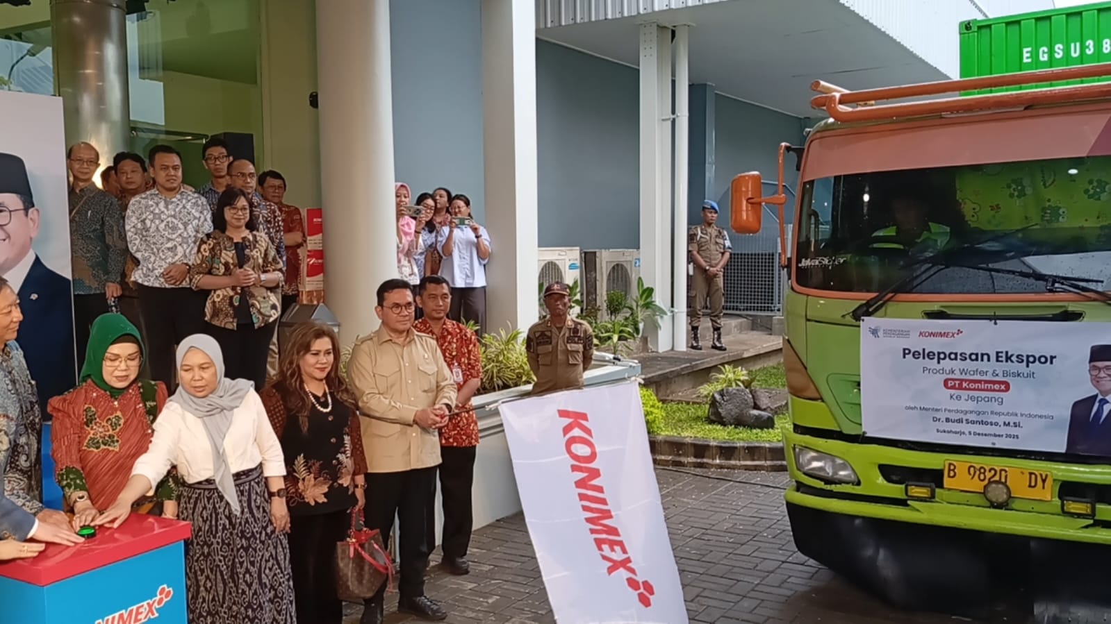 Portalika.com [SUKOHARJO] – Menteri Perdagangan, Budi Santoso melepas ekspor perdana satu kontainer produk makanan ringan jenis wafer dan biskuit produksi PT Konimex ke Jepang. Pelepasan ekspor senilai USD 9 ribu atau setara Rp150 juta ini berlangsung pada Jumat, 5 Desember 2025 di Sukoharjo, Jawa Tengah.