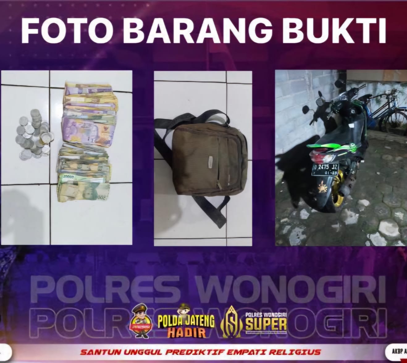 Portalika.com [WONOGIRI] – Anggota Kepolisian Resort (Polres) Wonogiri menangkap ADS, 30, warga Kecamatan Batuwarno, Kabupaten Wonogiri karena kedapatan mencuri kotak amal Musala Nur Hikmah di Desa Sumberharjo, Kecanatan Eromoko, Kabupaten Wonogiri, Selasa, 23 April 2024.