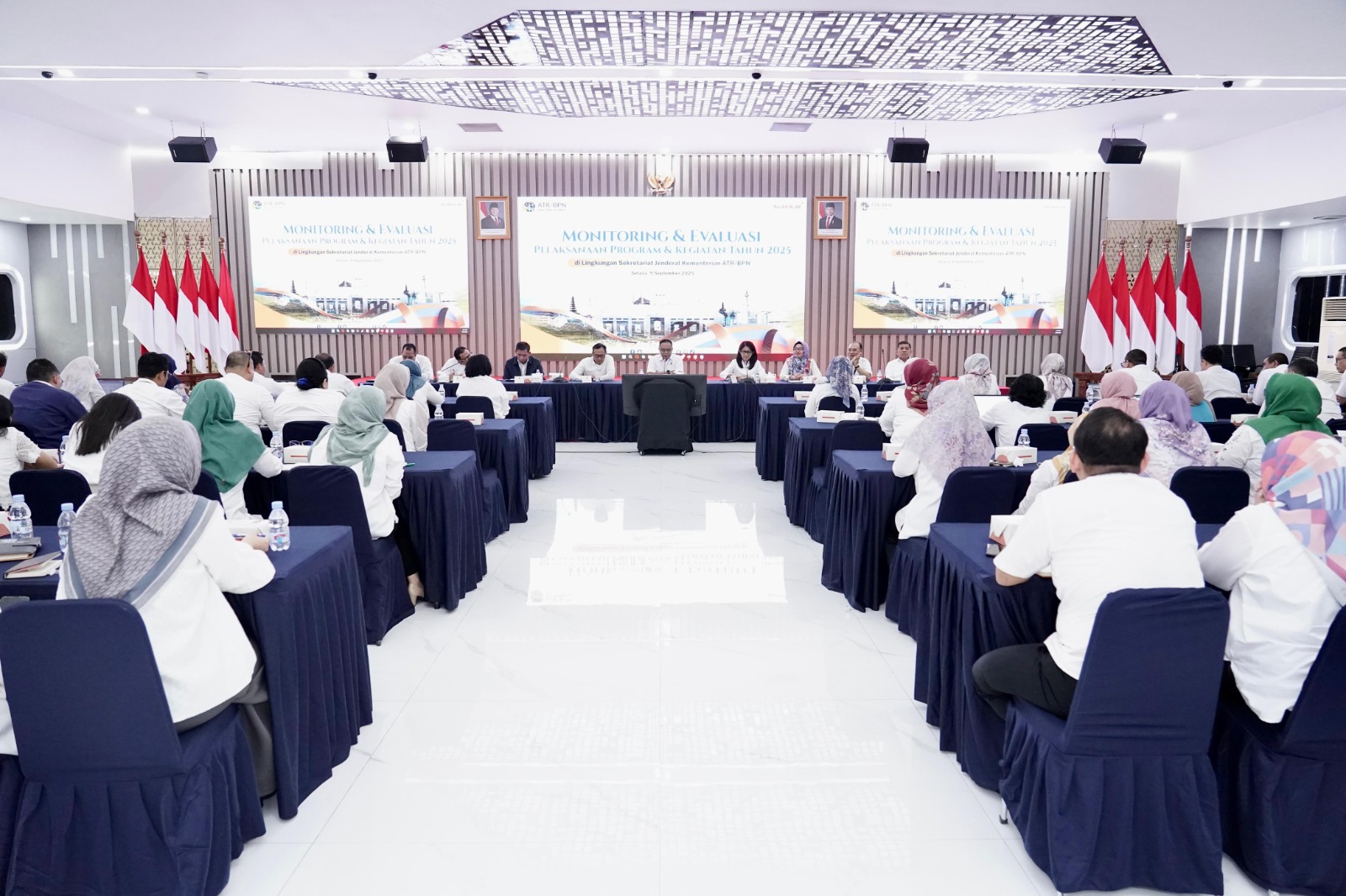 “Peran Sekretariat Jenderal ini begitu penting. Kita [Biro di bawah Sekretariat Jenderal] menjadi pendukung bagi direktorat teknis bahkan hingga Kantor Wilayah BPN Provinsi dan Kantor Pertanahan di Kabupaten/Kota. Dengan adanya efisiensi anggaran, kita perlu mengolah bagaimana caranya program kerja dapat dikelola dengan baik meski dengan anggaran terbatas,” ujar Sekjen Kementerian ATR/BPN saat memimpin Monitoring dan Evaluasi (Monev) Pelaksanaan Program dan Kegiatan Tahun 2025 di lingkungan Sekretariat Jenderal, di Aula Prona Kementerian ATR/BPN, Jakarta, Selasa, 9 September 2025.