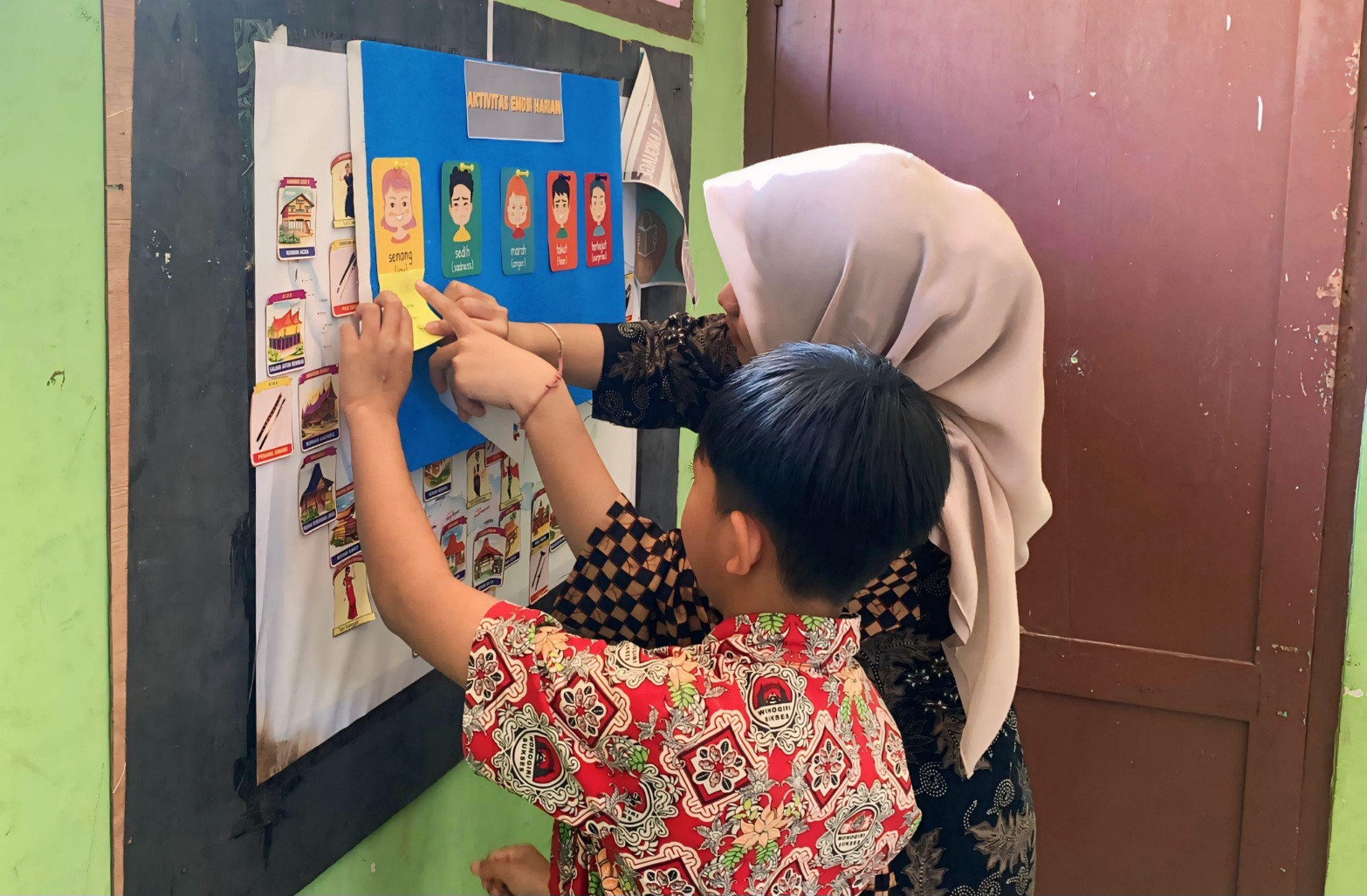 Selain berdiskusi siswa diminta untuk menuliskan perasaan emosi mereka di sebuah sticky not lalu ditempel di sterofoam. Kegiatan tersebut dilakukan setiap pagi agar siswa dapat belajar bagaimana mengungkapkan perasaan dan membantu siswa mengenali berbagai perasaan yang mungkin dialami setiap hari, seperti senang, marah, takut, terkejut, dan sedih.