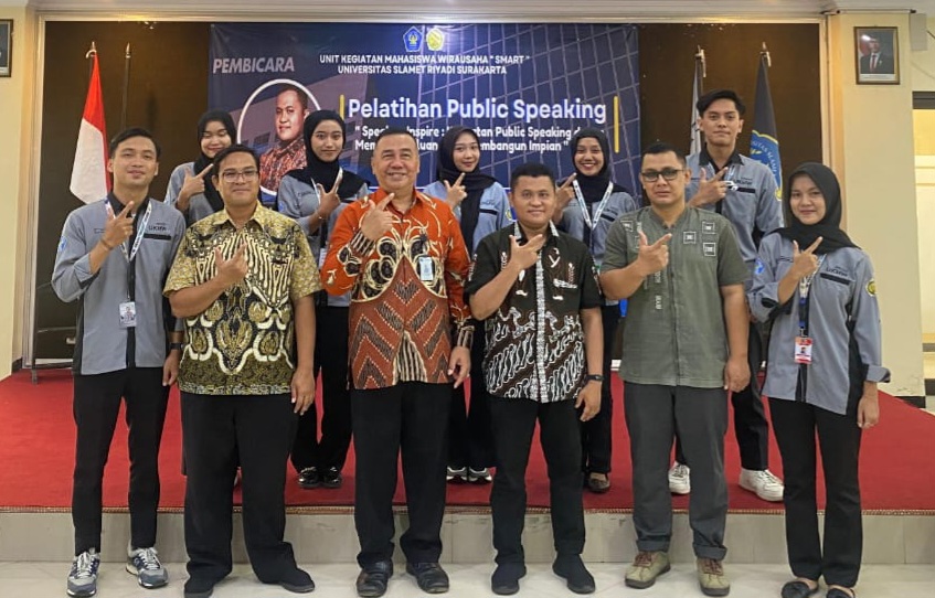 Portalika.com [SOLO] – Unit Kegiatan Mahasiswa Wirausaha Smart Universitas Slamet Riyadi (Unisri) Surakarta menggelar pelatihan public speaking dengan menggambil tema Speak To Inspire: Kekuatan Public Speaking Dalam Membuka Peluang dan Membangun Impian dengan menghadirkan Sihabuddin, SIKom, MIKom, dosen Fakultas Ilmu Sosial dan Ilmu Politik Unisri di gedung H ruang seminar lantai 5, belum lama ini.
