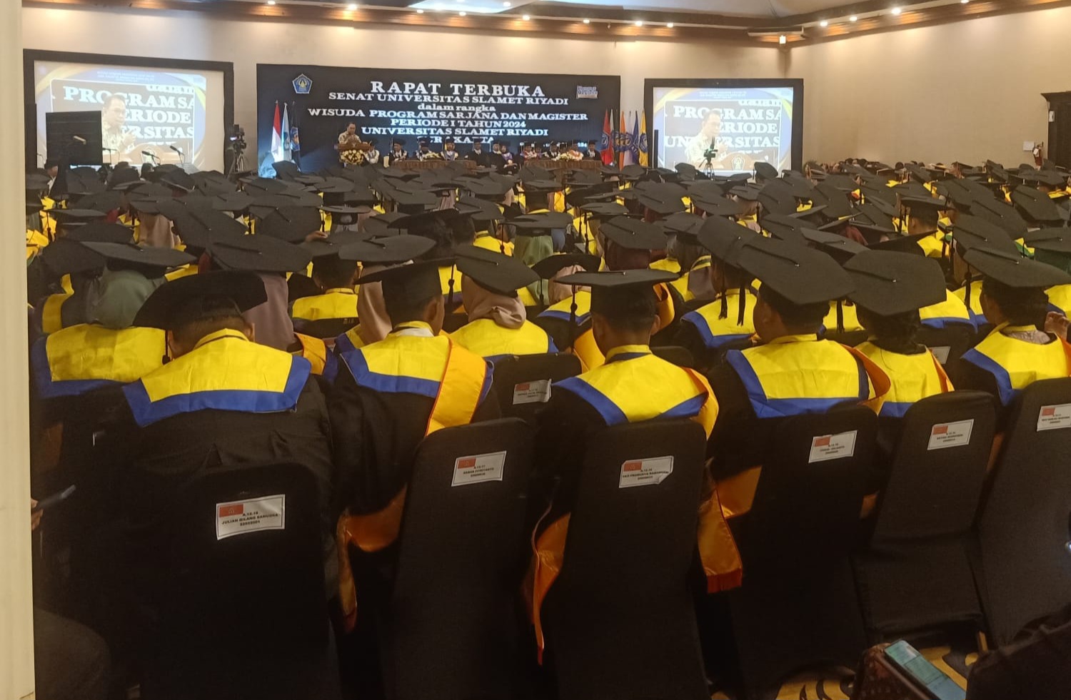 Sejumlah mahasiswa Unisri, Solo, Jateng yang lulus mengikuti wisuda sarjana di Hotel Sunan kawasan Kerten, Laweyan, Solo, belum lama ini. (Portalika.com/Iskandar)
