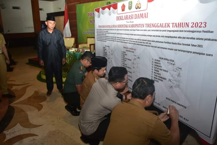 Ada 9 desa yang akan melaksanakan pilkades serentak di Trenggalek tahun 2023 ini. Sembilan desa itu di antaranya Desa Banaran, Kecamatan Tugu; Desa Salamwates, Kecamatan Dongko; Desa Tanggaran, Kecamatan Pule; Desa Jombok, Kecamatan Pule; Desa Masaran, Kecamatan Bendungan; Desa Ngadirenggo, Kecamatan Pogalan; Desa Wonocoyo, Kecamatan Pogalan Desa Nglebo, Kecamatan Suruh; Desa Salamrejo, Kecamatan Karangan. (Rudi Sukamto)