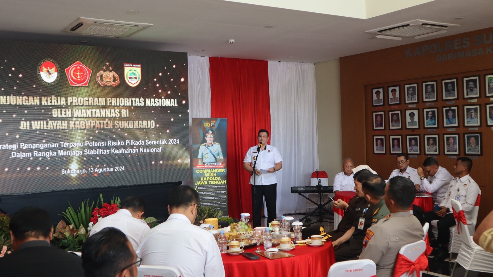 Sementara itu, Tim Watannas RI yang dipimpin Irjen Pol Dr Nazirwan Adji Wibowo, SIK, MSi menyatakan kunjungan kerja ke Kabupaten Sukoharjo ini bertujuan untuk penanganan terpadu potensi risiko Pilkada serentak 2024 dalam rangka menjaga stabilitas keamanan nasional.